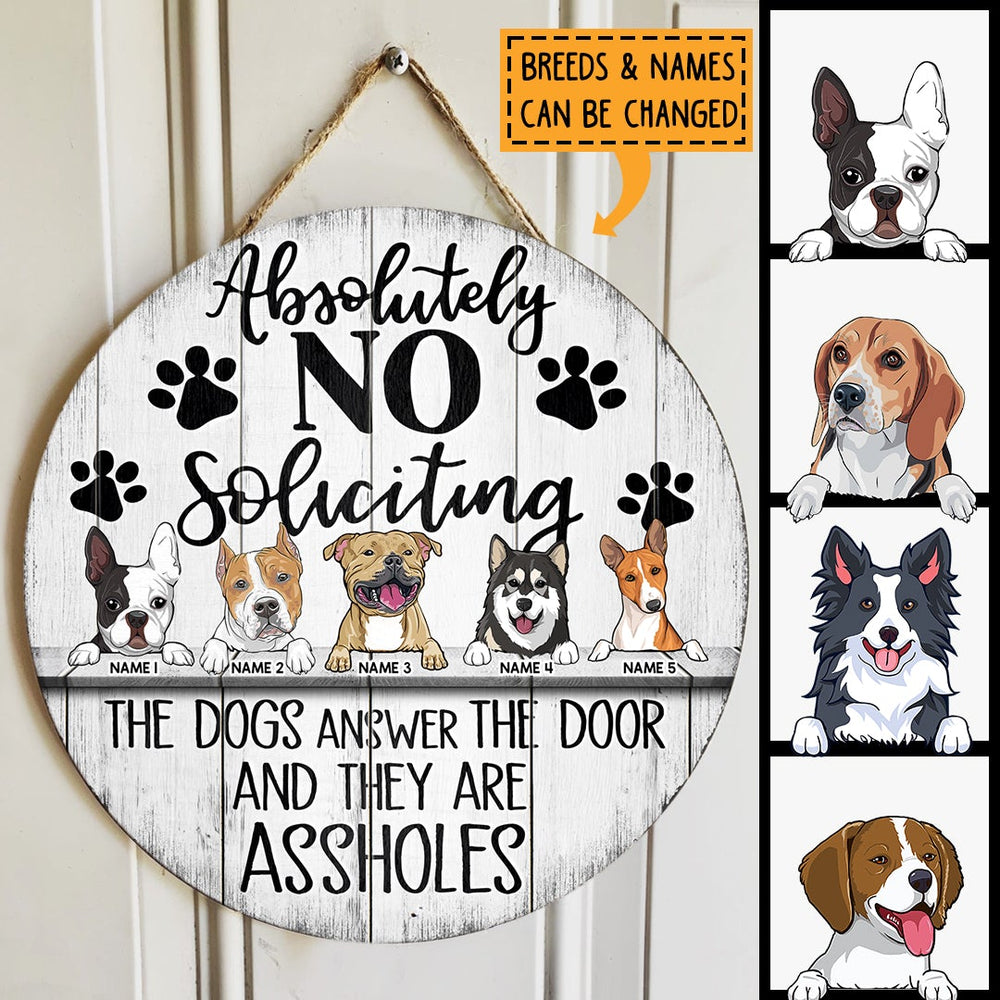 Absolutely No Soliciting, White Rustic Door Hanger, Personalized Dog Breeds Door Sign, Front Door Decor