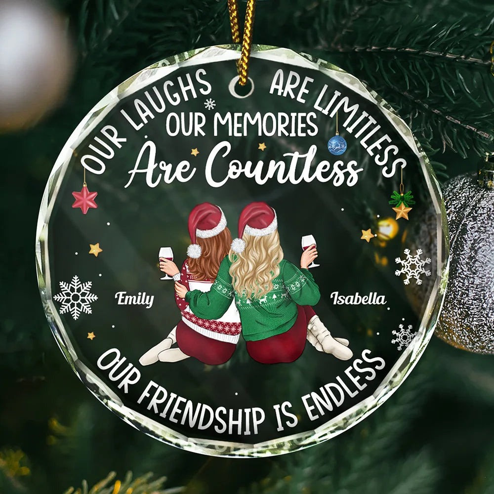Besties Our Laughs Are Limitless Christmas Backside - Personalized Circle Glass Ornament