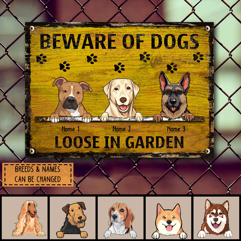 Beware Of Dogs Metal Yard Sign, Gifts For Dog Lovers, Loose In Garden Funny Warning Signs