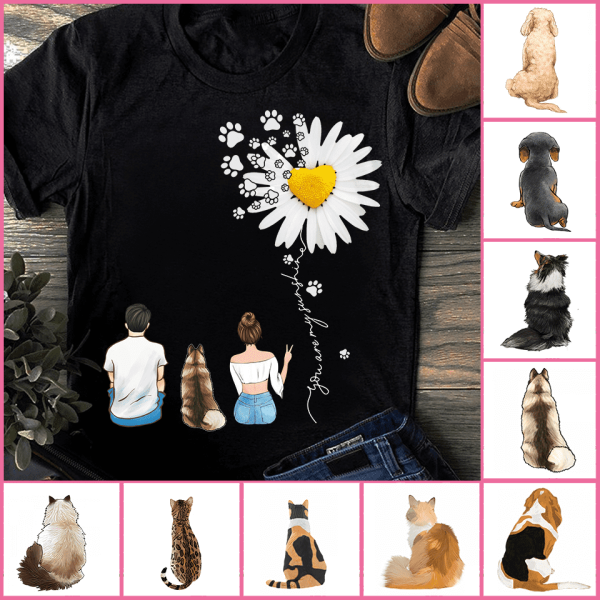 "Couple Under Daisy" couple and dog, cat personalized T-Shirt