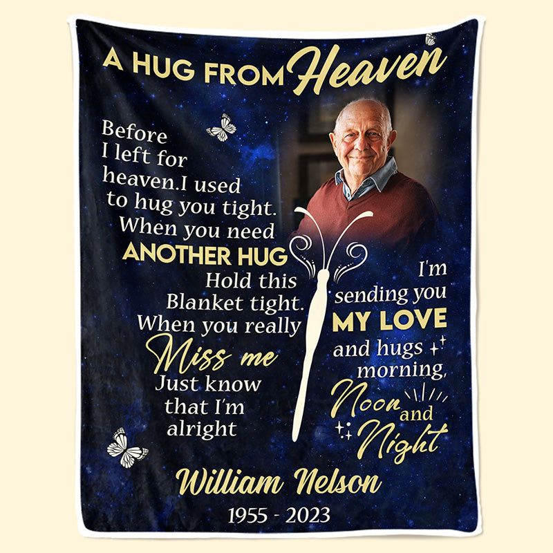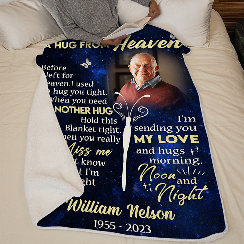 Custom Photo This Is A Hug From Heaven - Memorial Personalized Custom Blanket - Christmas Gift, Sympathy Gift For Family Members