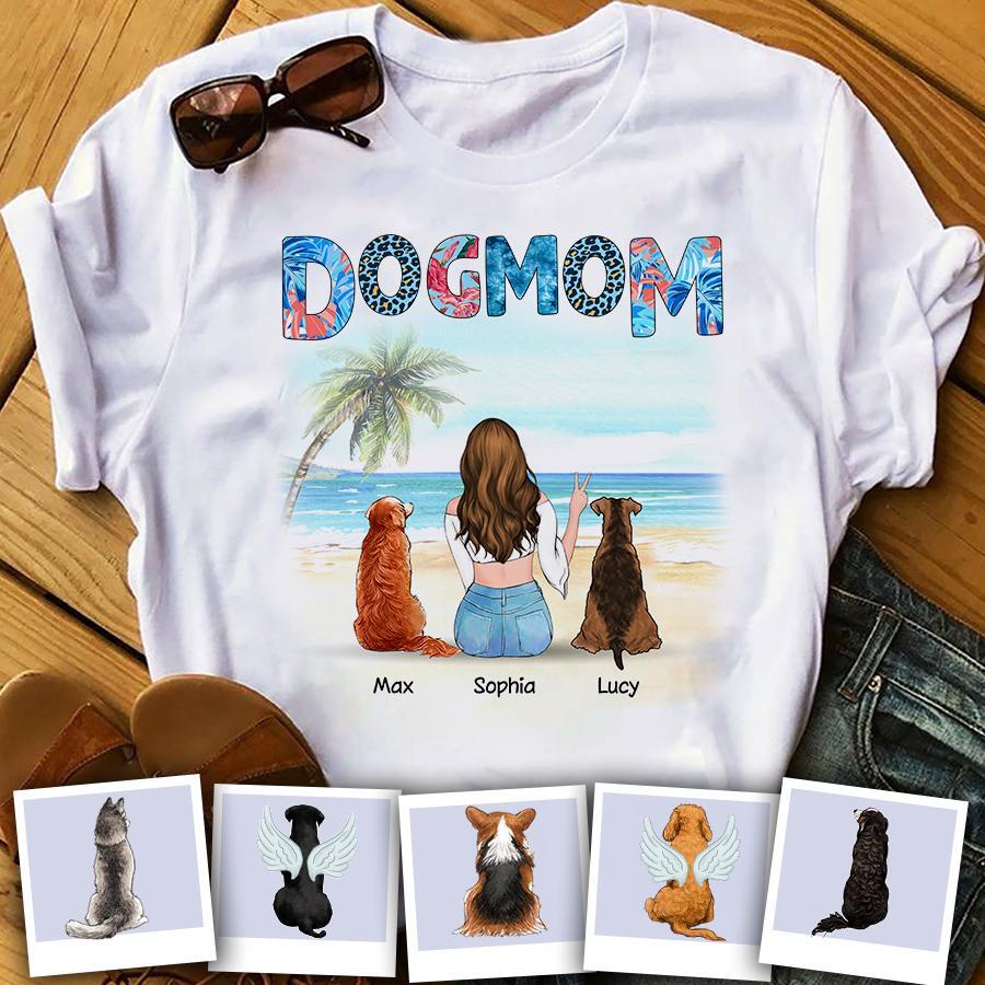 Dog Mom And Her Fur Babies On The Beach Personalized T-Shirt TS-PT1557