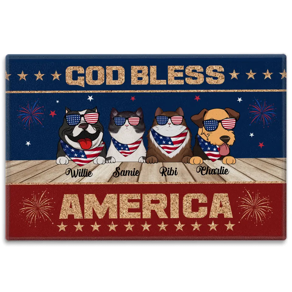 God Bless America - Personalized Doormat, 4th Of July Pet Doormat