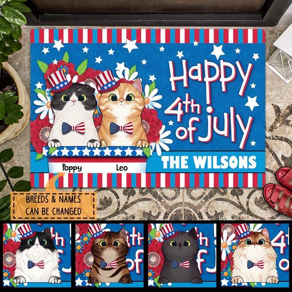 Happy 4th Of July - USA Hat and Bowtie - Personalized Cat Doormat