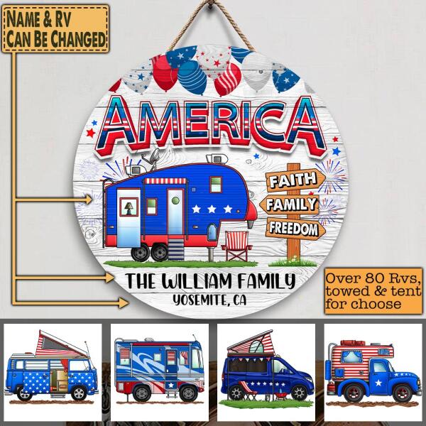 Happy Jule 4th - America - Wooden Door Sign