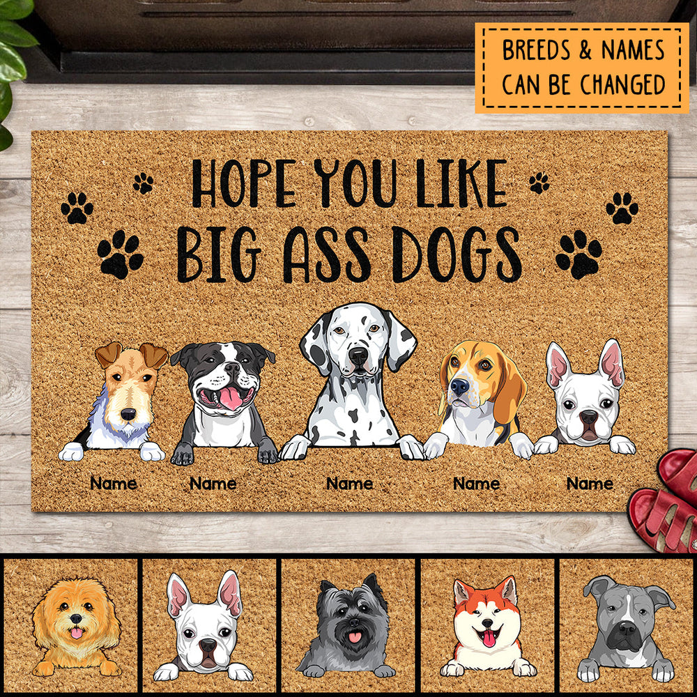 Hope You Like Big Ass Dogs, Black Pawprints Doormat, Personalized Dog Breeds Doormat, Home Decor, Gifts For Dog Lovers
