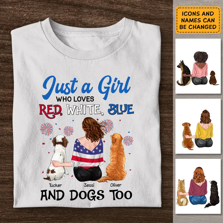 Just A Girl Who Loves Red White Blue And Dog Too - Personalized T-Shirt - 4th July TS - PT3852