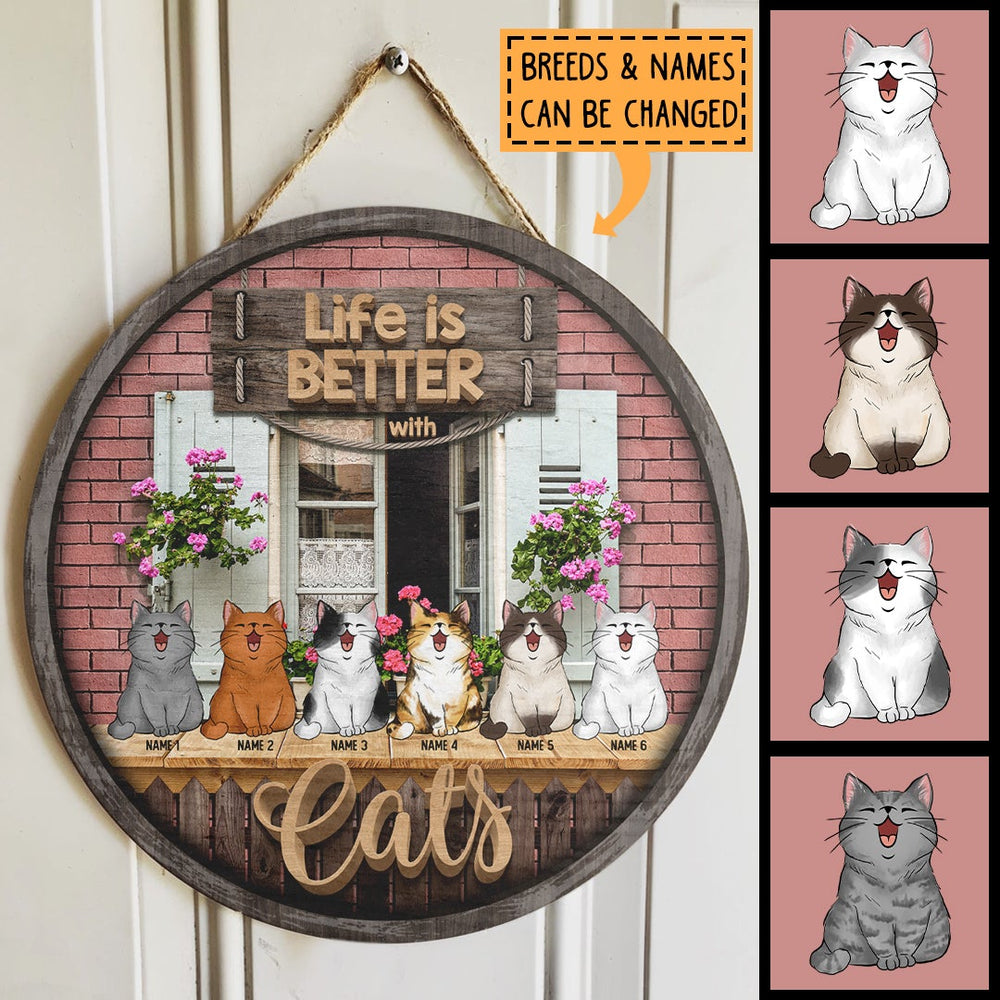 Life Is Better With Cats - Red Brick Wall - Personalized Cat Door Sign