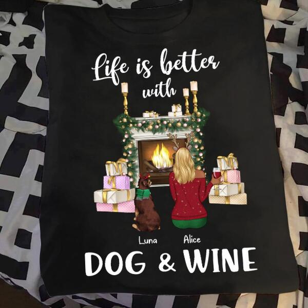 Life Is Better With Dogs And Wine Christmas Personalized T-Shirt TS-PT352