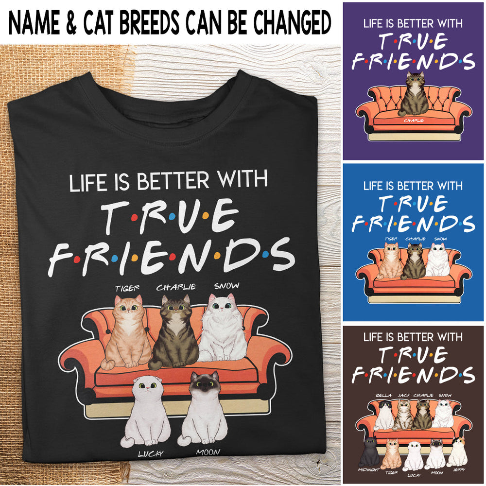 Life Is Better With True Friends - Cats On Sofa -Personalized Cat T-shirt