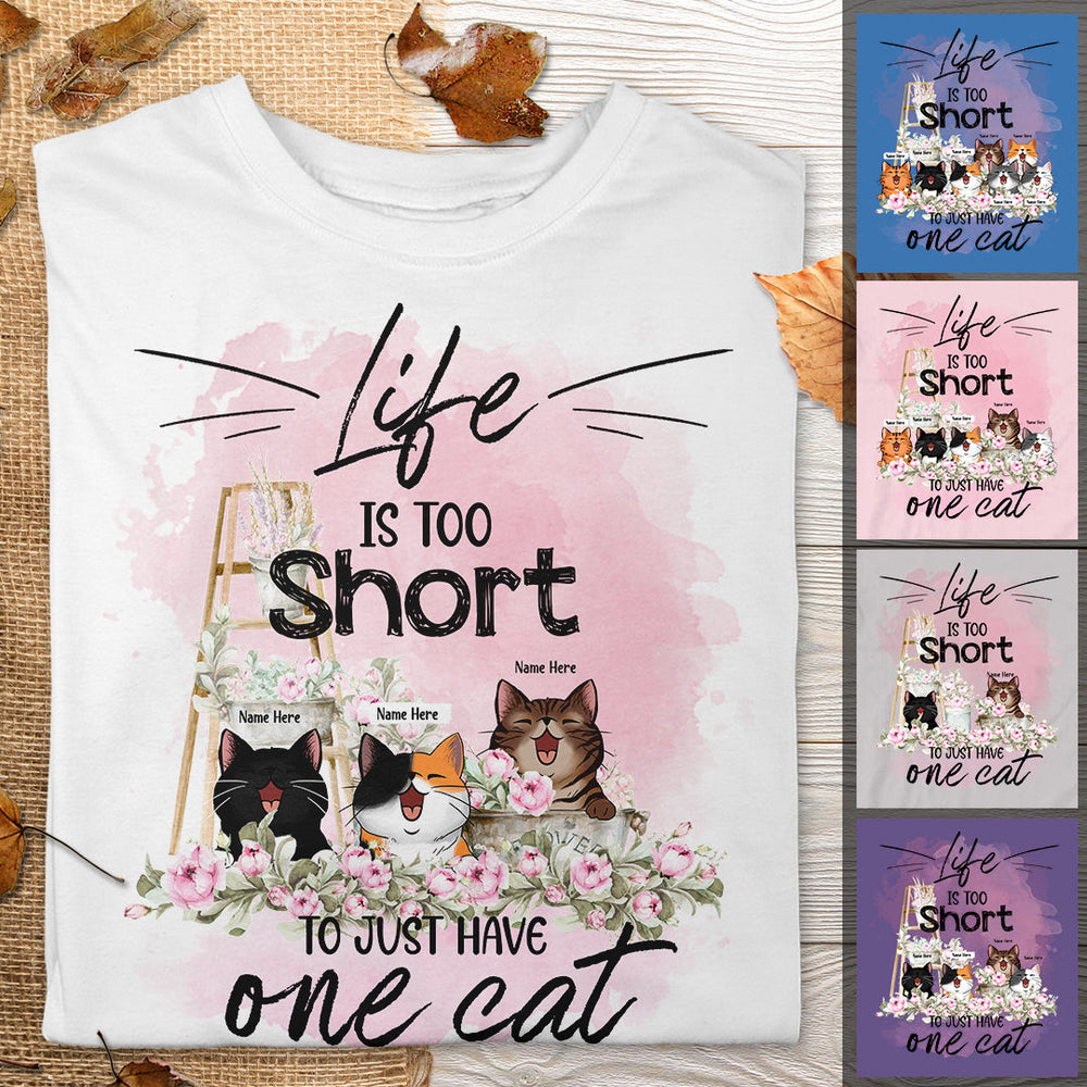 Life Is Too Short To Just Have One Cat - Ladder And Flower - Personalized Cat T-shirt