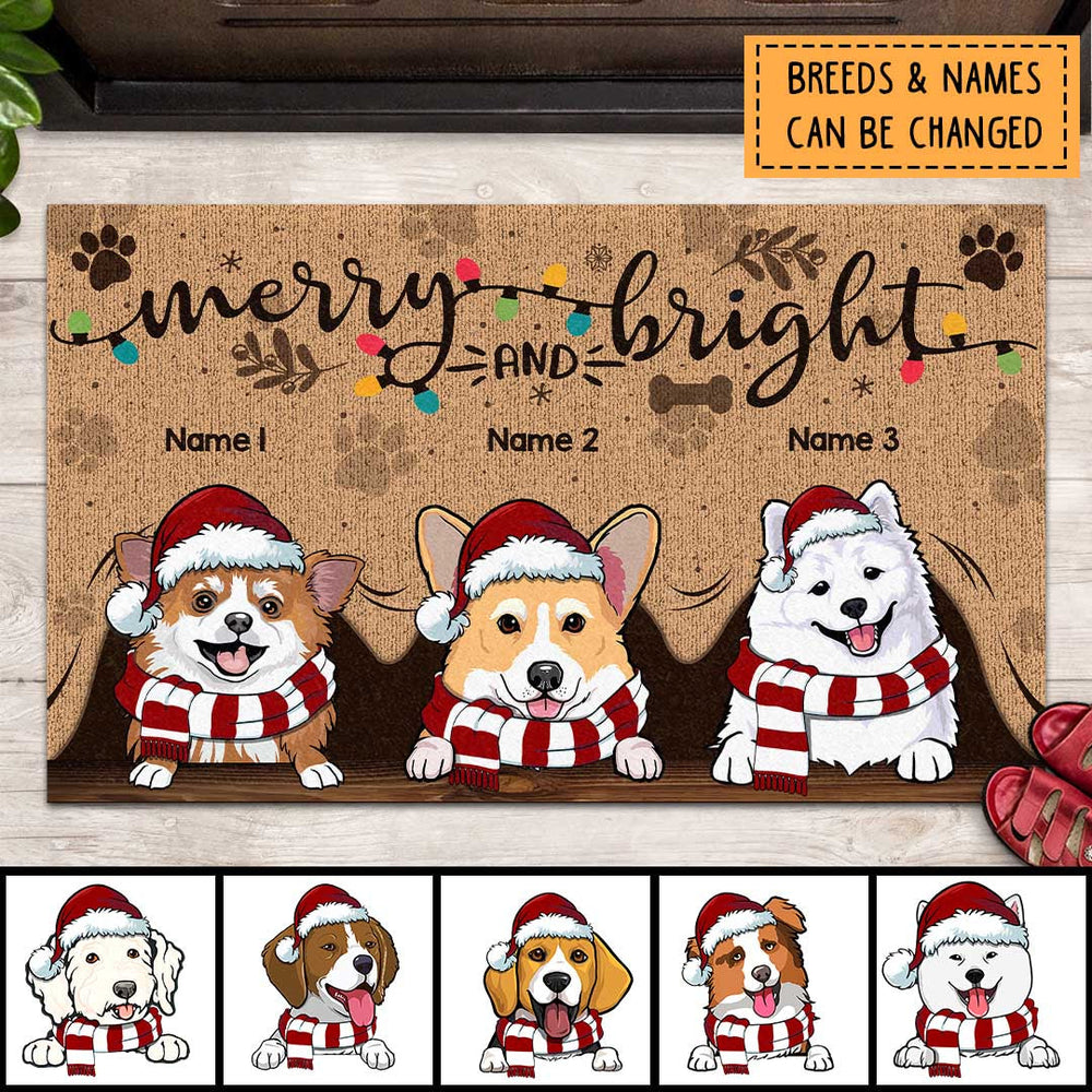 Merry And Bright, Christmas Dog With Light Color, Personalized Dog Lovers Christmas Doormat