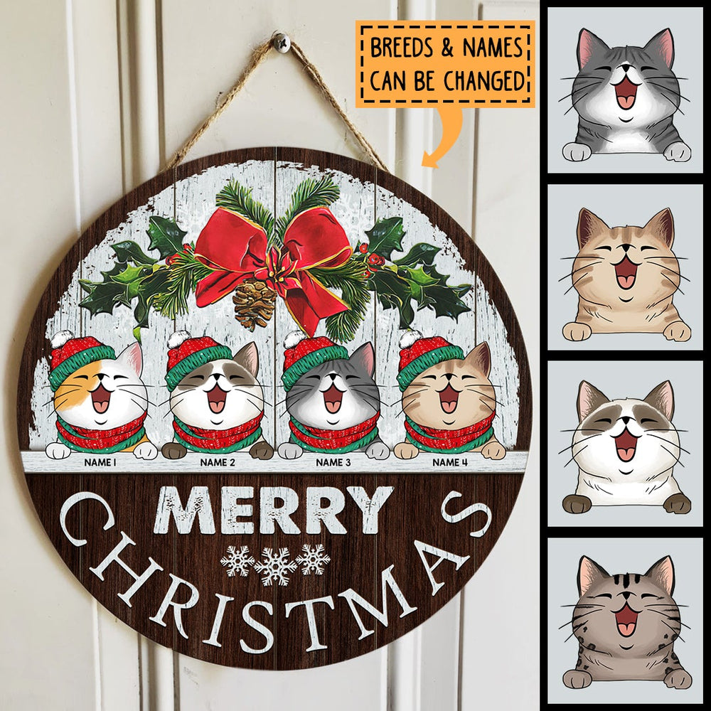 Merry Christmas - White Wood Wall - Personalized Cat Christmas Door Sign