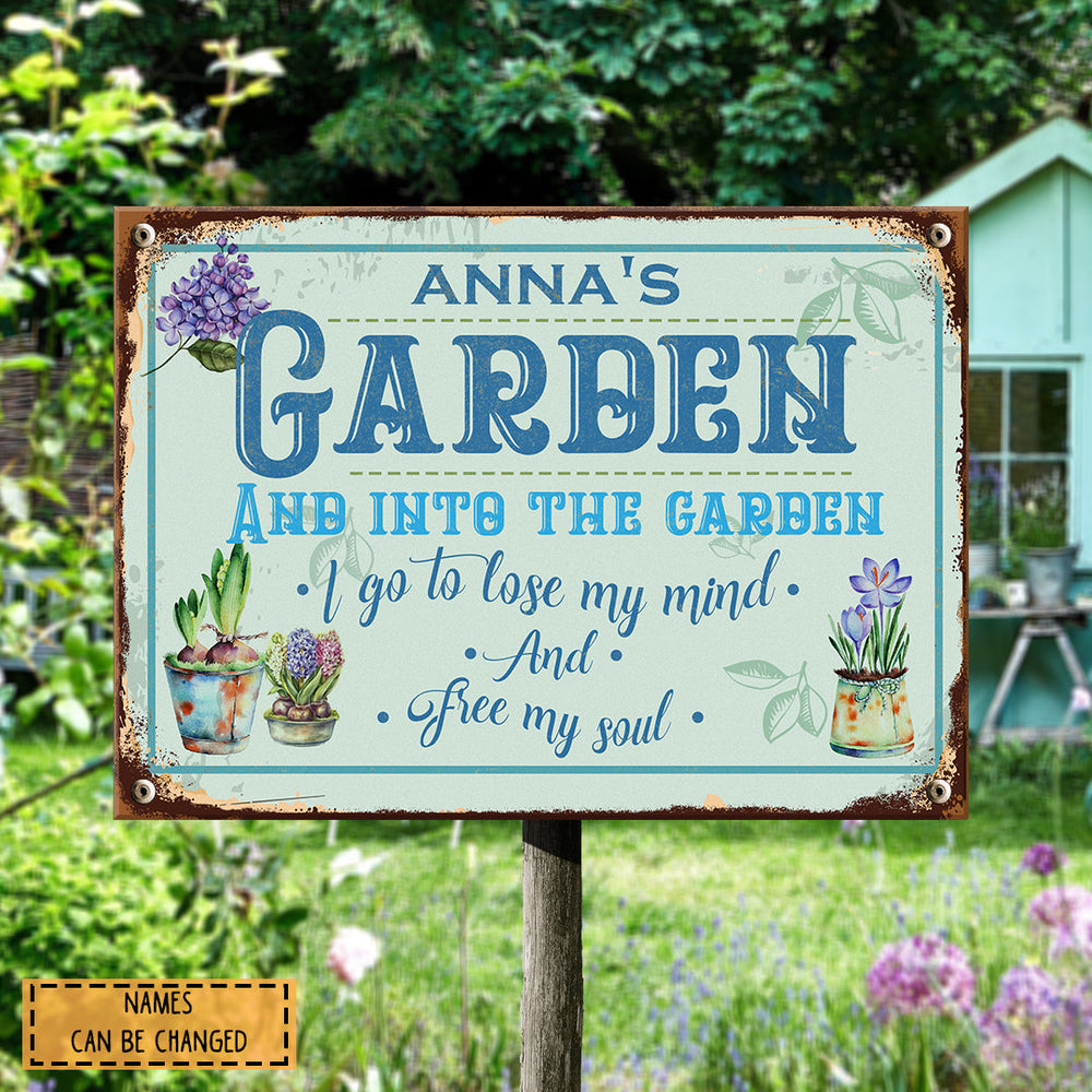 Metal Garden Sign, And Into The Garden I Go To Lose My Mind And Free My Soul Vintage Sign