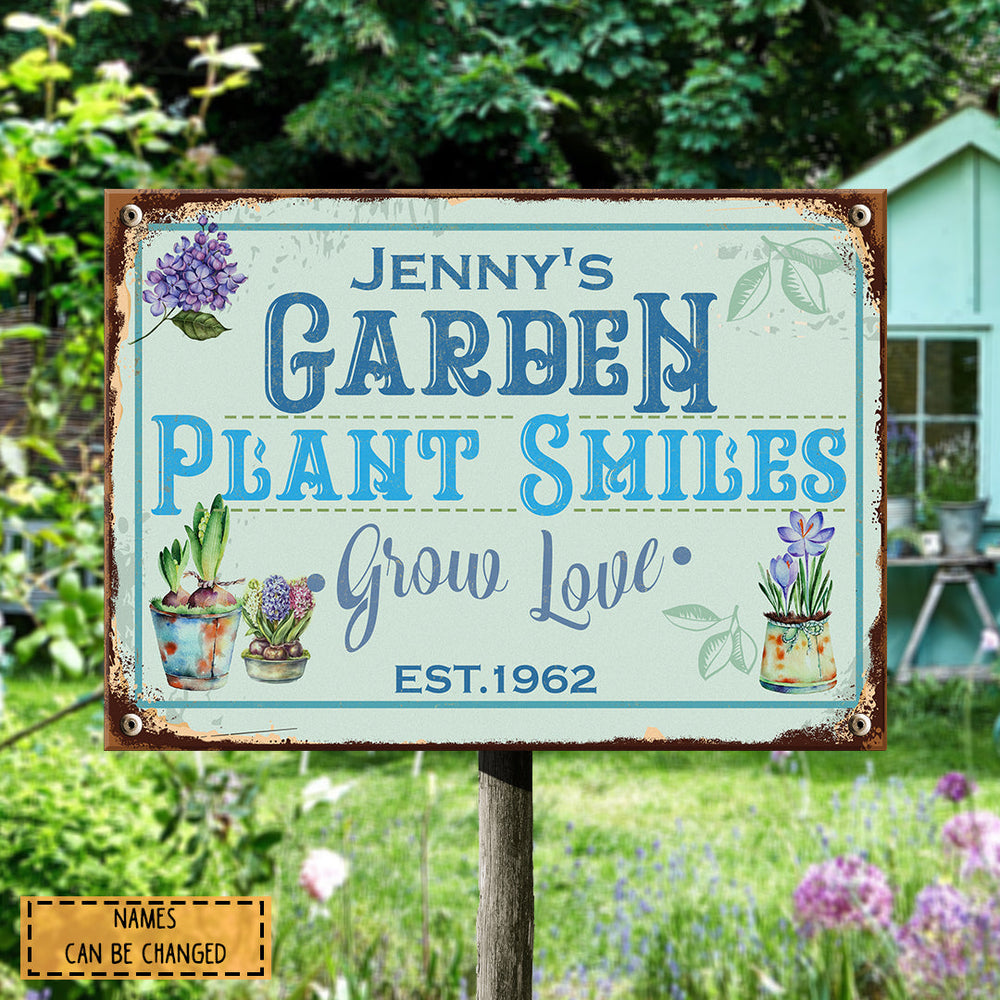 Metal Garden Sign, Plant Smiles Grow Love Vintage Sign, Personalized Housewarming Gifts