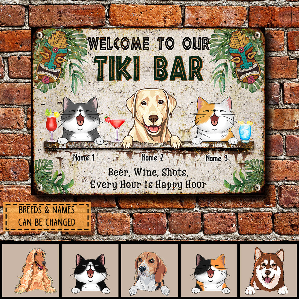 Metal Tiki Bar Signs, Gifts For Pet Lovers, Beer Wine Shots Every Hour Is Happy Hour Tropical Style Welcome Signs