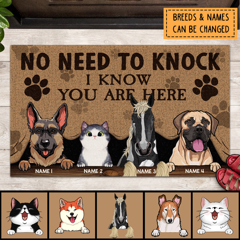 No Need To Knock We Know You Are Here, Pet Peeking From Curtain, Personalized Dog & Cat & Horse Doormat, Home Decor