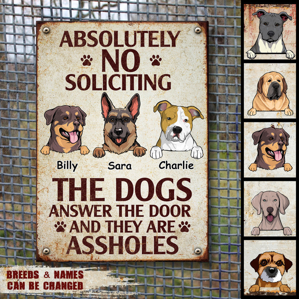 No Soliciting Metal Yard Sign, Gifts For Dog Lovers, The Dogs Answer The Door And They Are Assholes