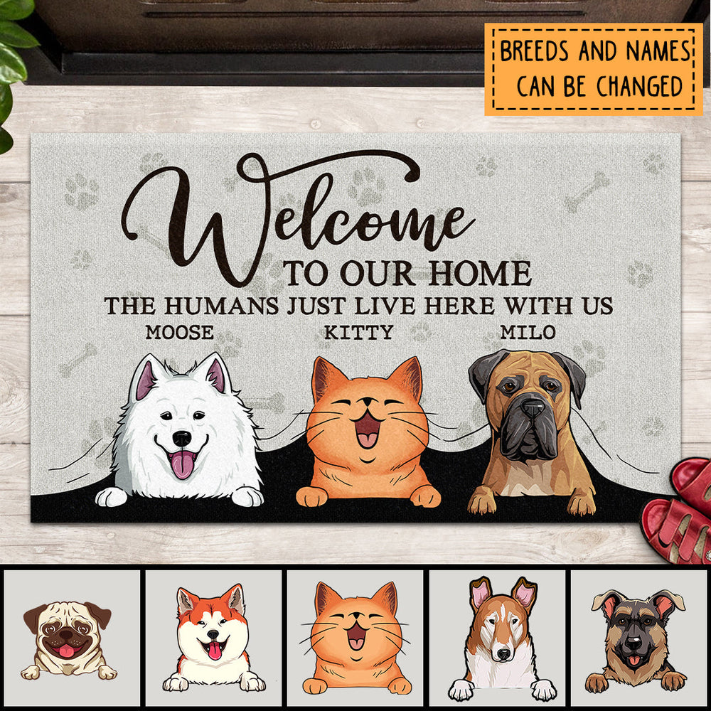 Personalized Funny Dog Cat Family Doormat, Housewarming Gift, Welcome Mat, Dog Cat Decorative Mat, Pet Lover Gift