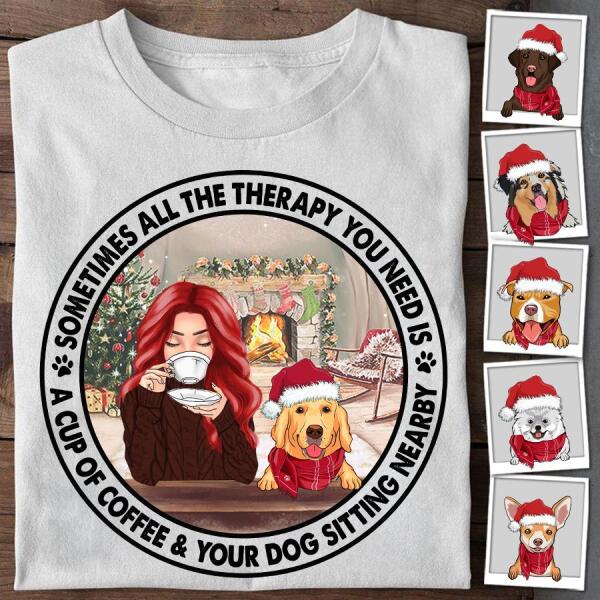 The Therapy You Need Is A Cup Of Coffee & Your Dog Sitting Nearby Personalized T-shirt TS-NB740
