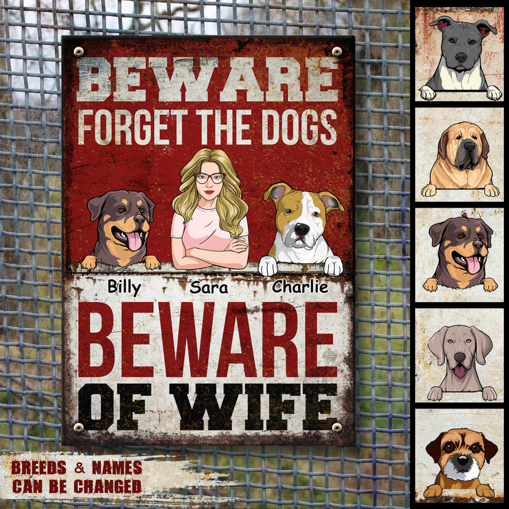 Warning Metal Yard Sign, Gifts For Dog Lovers, Beware Forget The Dogs Beware Of The Wife