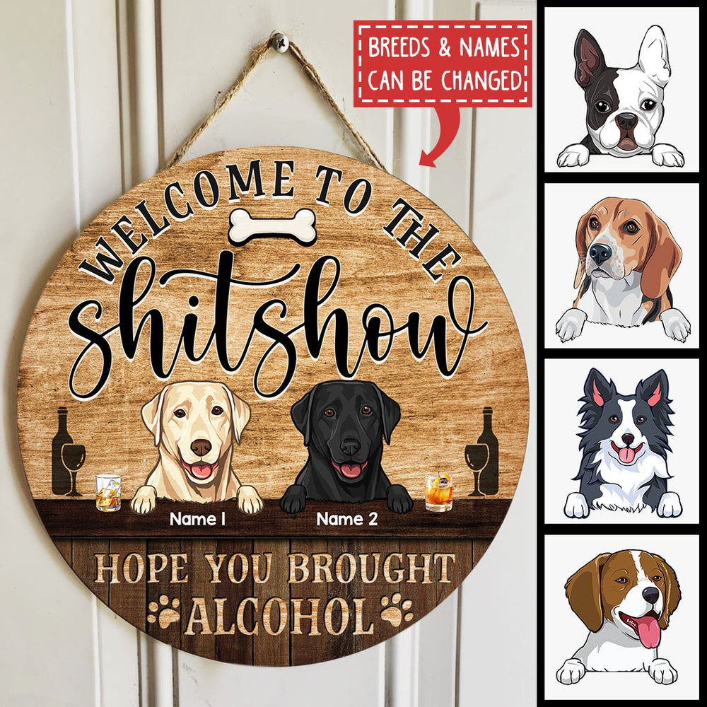 Welcome To The Shitshow Hope You Brought Alcohol, Wooden Door Hanger, Personalized Dog Door Sign